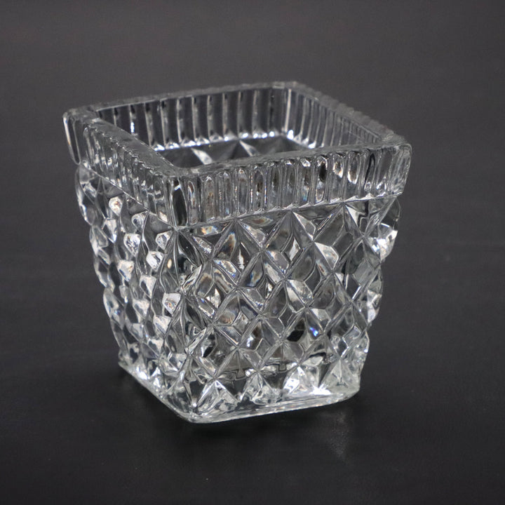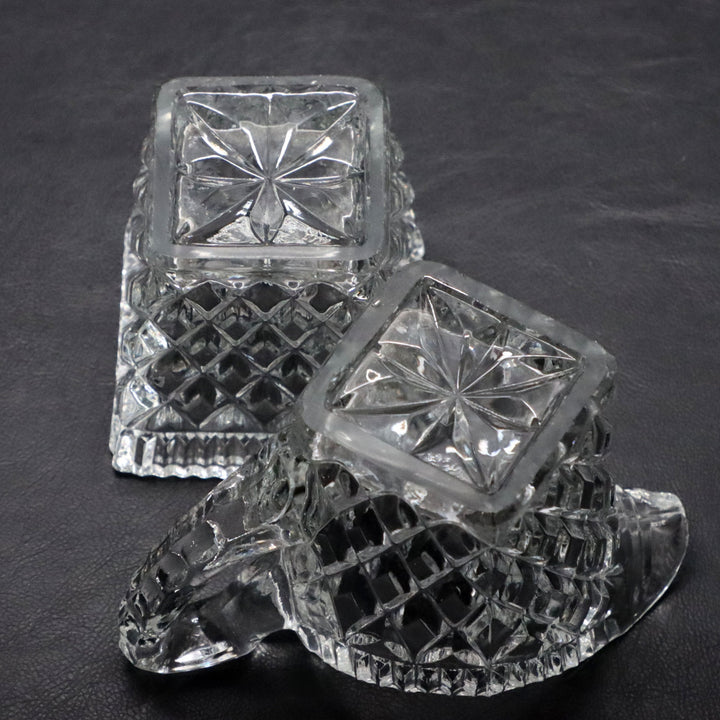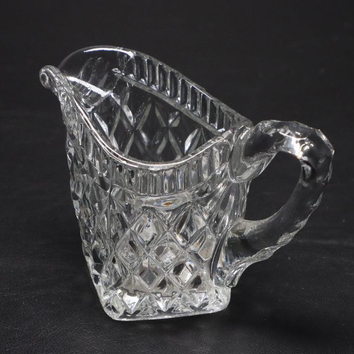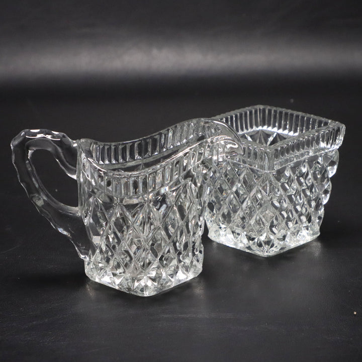 Diamond Point and grooved Rim Creamer and Sugar Bowl Glass Set Vintage