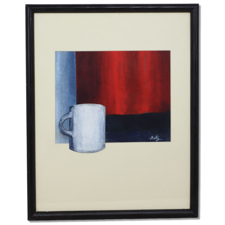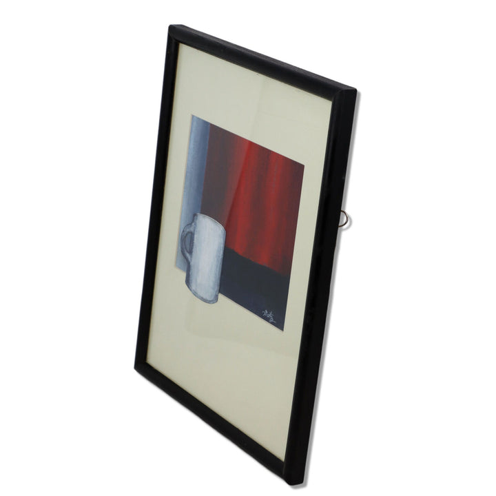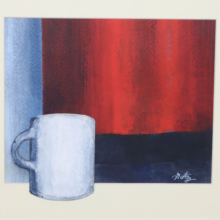 Painted mug is silhouetted and applied over mat and image.for depth effect.