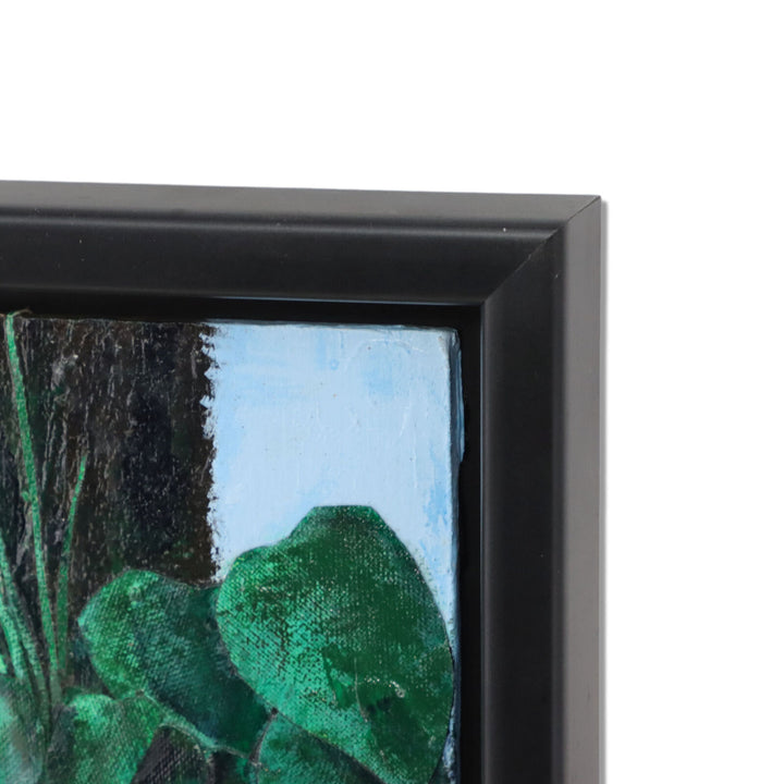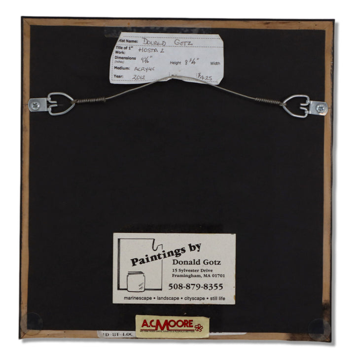 Titled "Hosta 2" on the back. Black 1 1/2" deep wood frame.