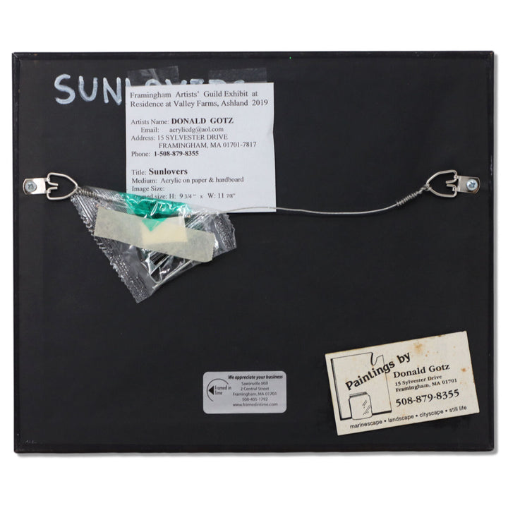 Titled "Sunlovers" on the back. cordovan fade to black wood frame.