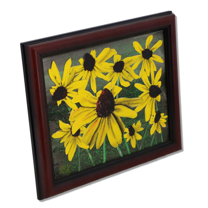 Donald Gotz "Sunlovers" Sunflowers Acrylic Multimedia 12x10 Signed 2019