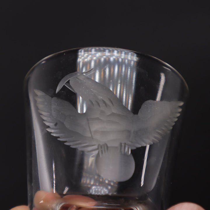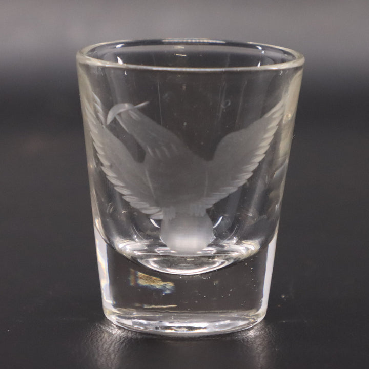 Eagle Bird Frosted Etched Shot Glass Floating Bubble Base 2 1/4" x 2"