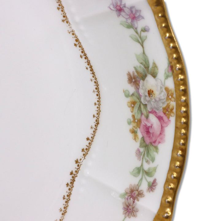 Elite Limoges 10" Serving Vegetable Pasta Bowl Floral Gold Embossed Rim 1920's