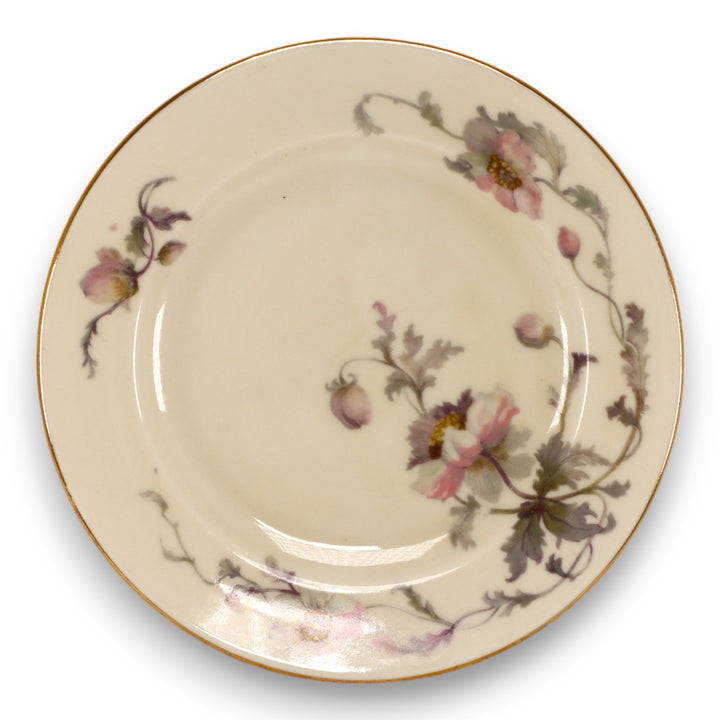 Pink/Gray Flowers, Cream Background, Smooth Gold Rimmed.