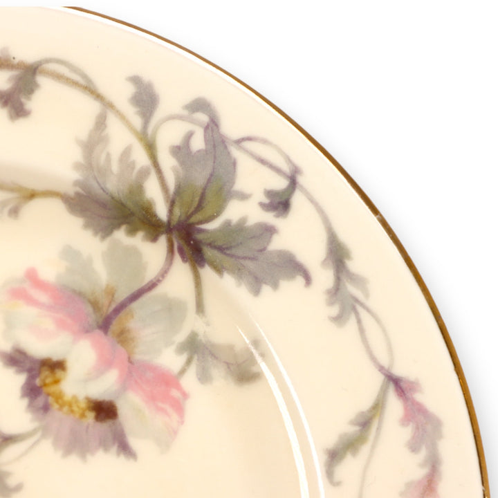 Pink/Gray Flowers, Cream Background, Smooth Gold Rimmed.