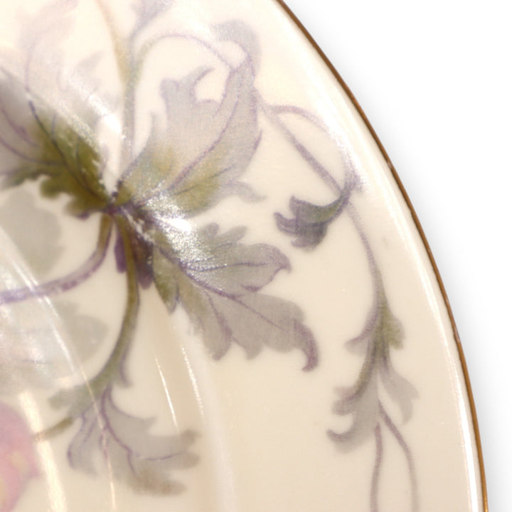 Pink/Gray Flowers, Cream Background, Smooth Gold Rimmed.