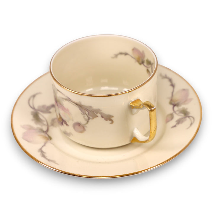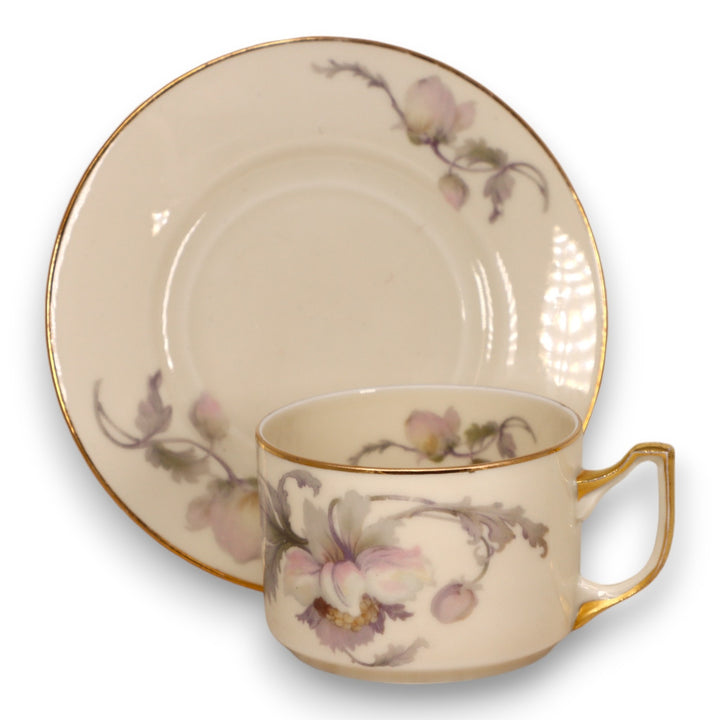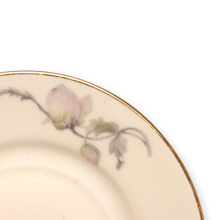 Pink/Gray Flowers, Cream Background, Smooth Gold Rimmed.