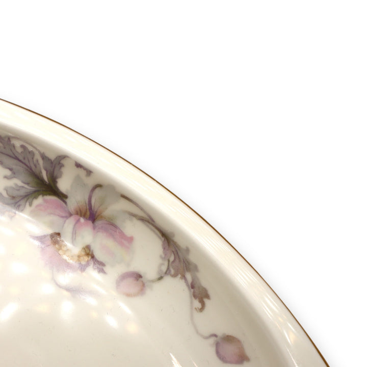 Pink/Gray Flowers, Cream Background, Smooth Gold Rimmed.