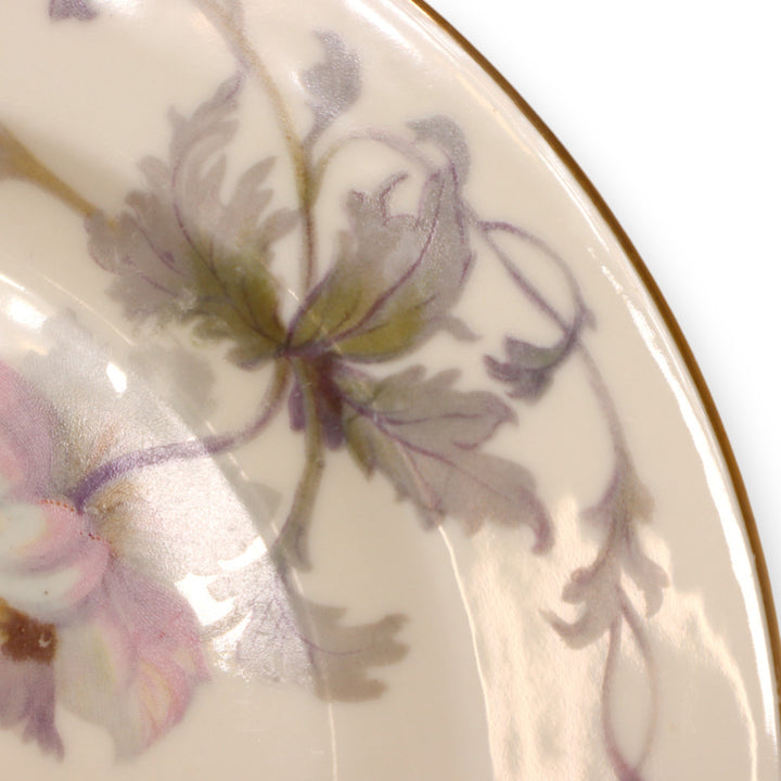 Pink/Gray Flowers, Cream Background, Smooth Gold Rimmed.