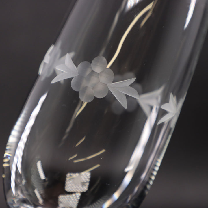 Etched Crystal Champagne Flute Floral Etching Swirled Stem Vintage