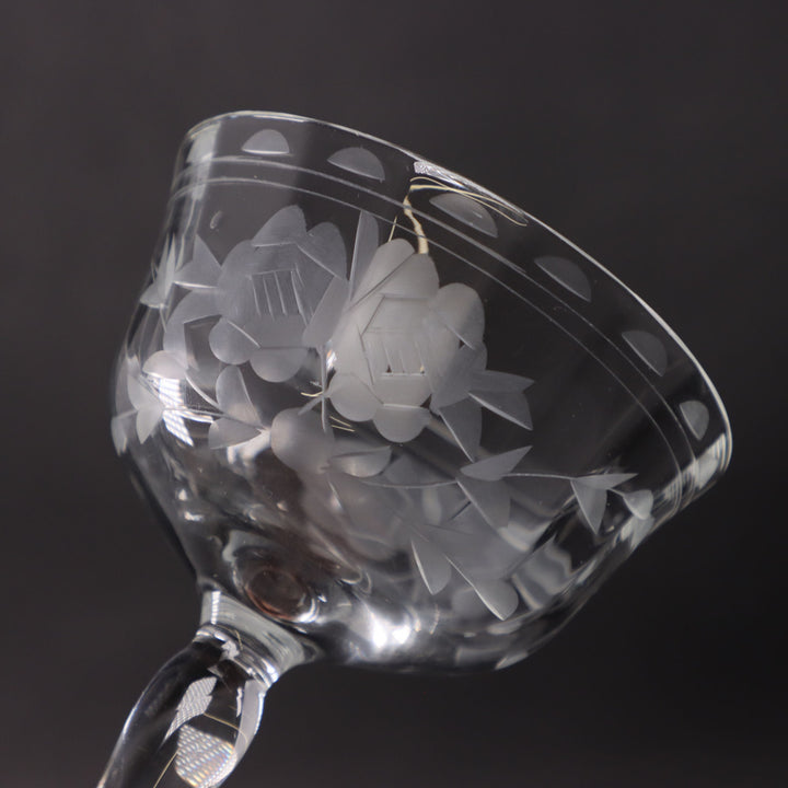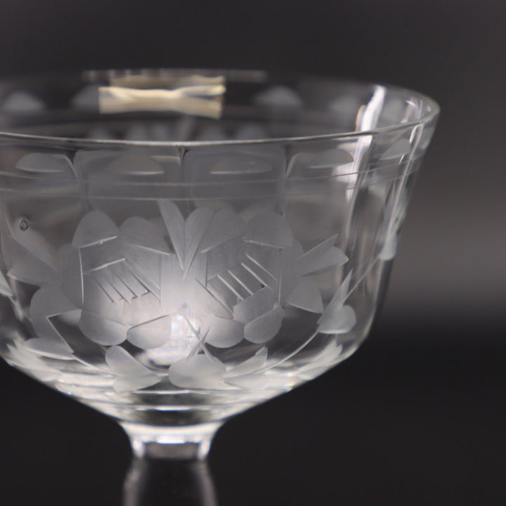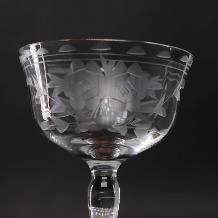 Etched Floral Crystal Coupe Champagne Glass – Vintage Bohemian 1940s