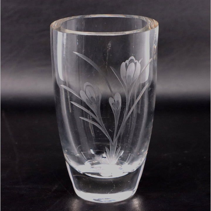 Etched Floral Heavy Crystal Flower Vase 6 1/4"