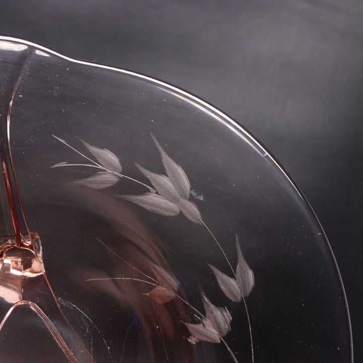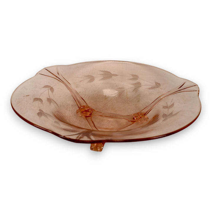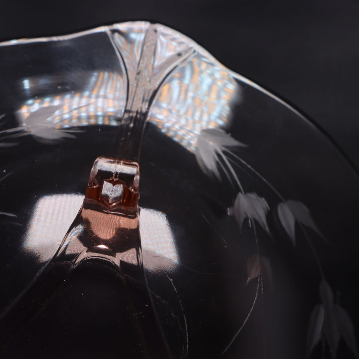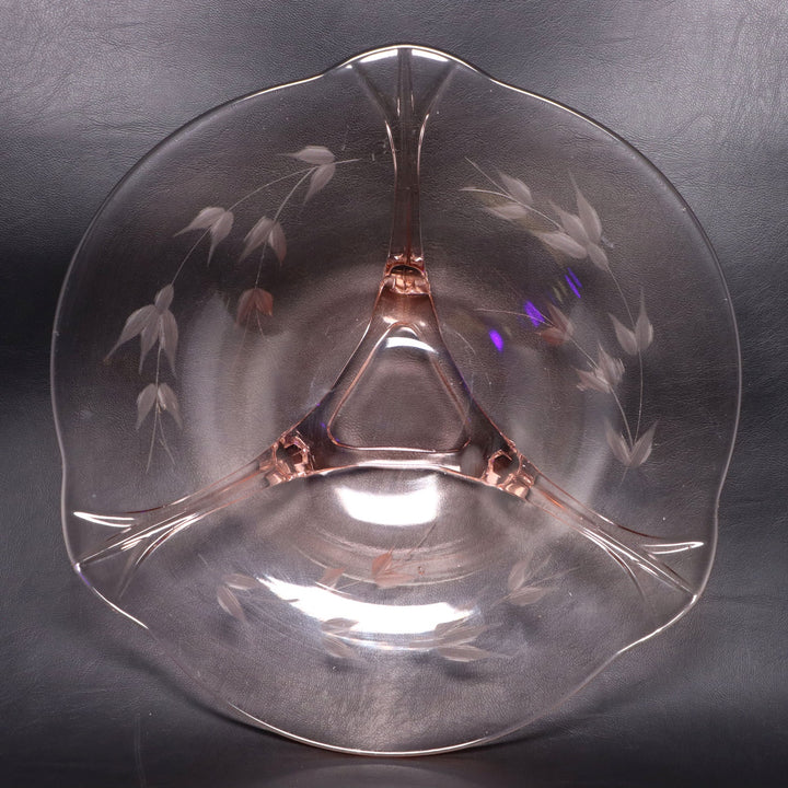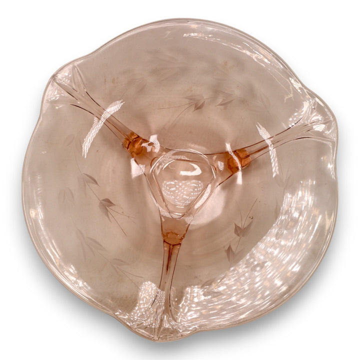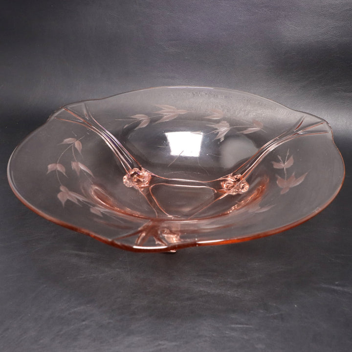 Etched Pink Depression Glass Footed Fruit Bowl 12 1/2" Vintage 1930's