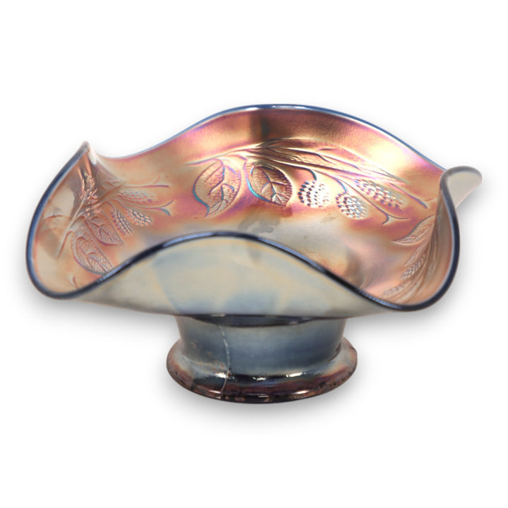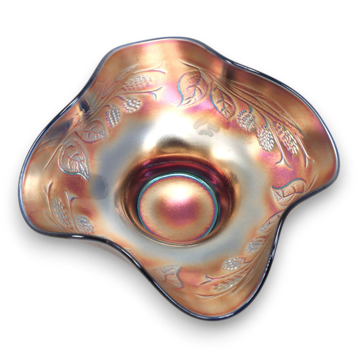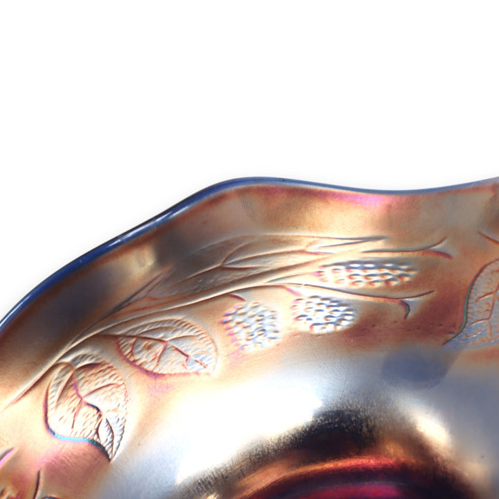 Fenton Blackberry Spray Carnival Glass Ruffled Edge 7" Bowl Iridescent Antique