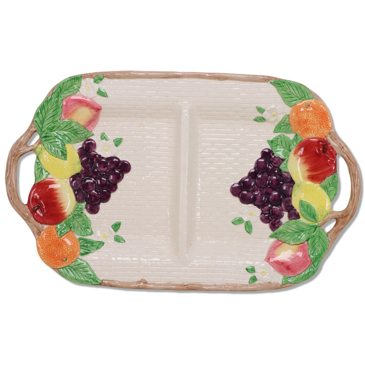 Fitz & Floyd Mediterranean Fruit Basketweave Divided 17" Divided Tray 1990