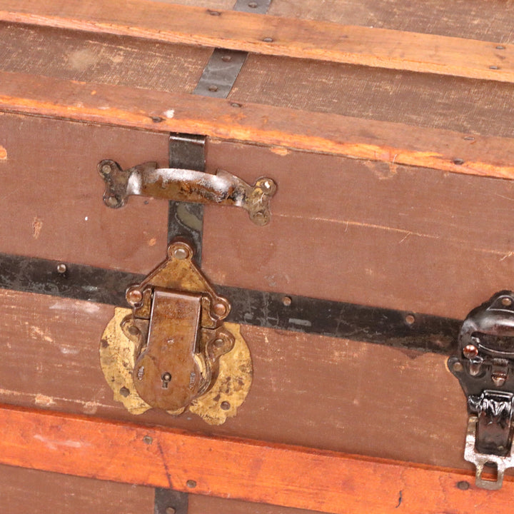 Flat Top Antique Steamer Trunk 28" Brown canvas Pirate Chest Circa 1890's