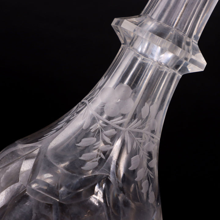 Flower Vine Etched and Cut Crystal Bottle Decanter 10 5/8"