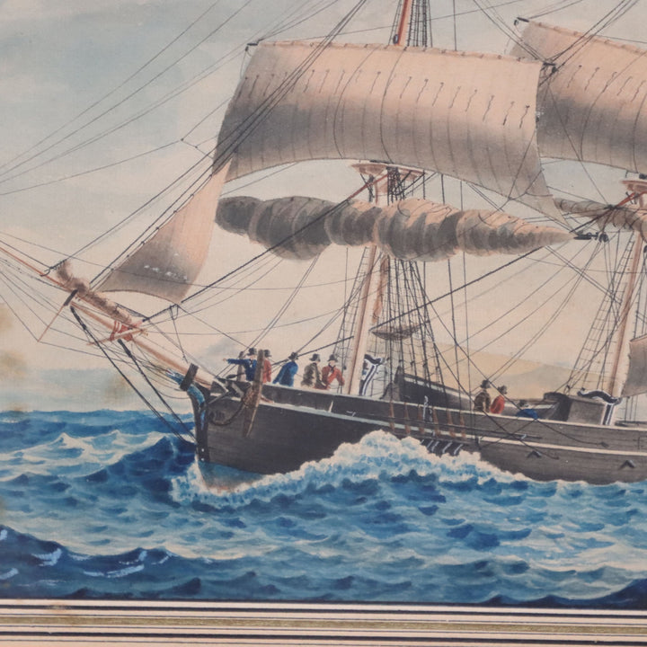 Frederic Roux Ship Approaching Marseilles Birds Eye Frame Antique Lithograph