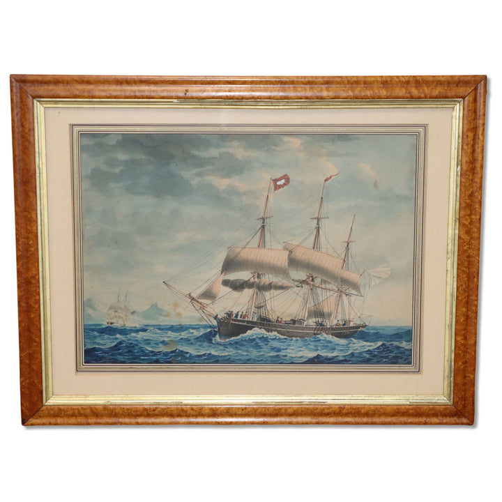 Francois-Joseph-Frederic Roux (1805-1870) By 1822, at the age of seventeen, he was already painting for profit in his father's studio having developed a style that would have been the envy of many an older practitioner. He became an apprentice to Horace Vernet in the 'atelier Vernet' in Paris at a young age and was soon to embrace great success both within the French court and elsewhere, so much so that he decided in 1835 to move to Le Havre where he became a hydrographer and "painter of marines". His watercolours of Le Havre are admired particularly for their high quality and within his own lifetime he was to receive international acclaim.