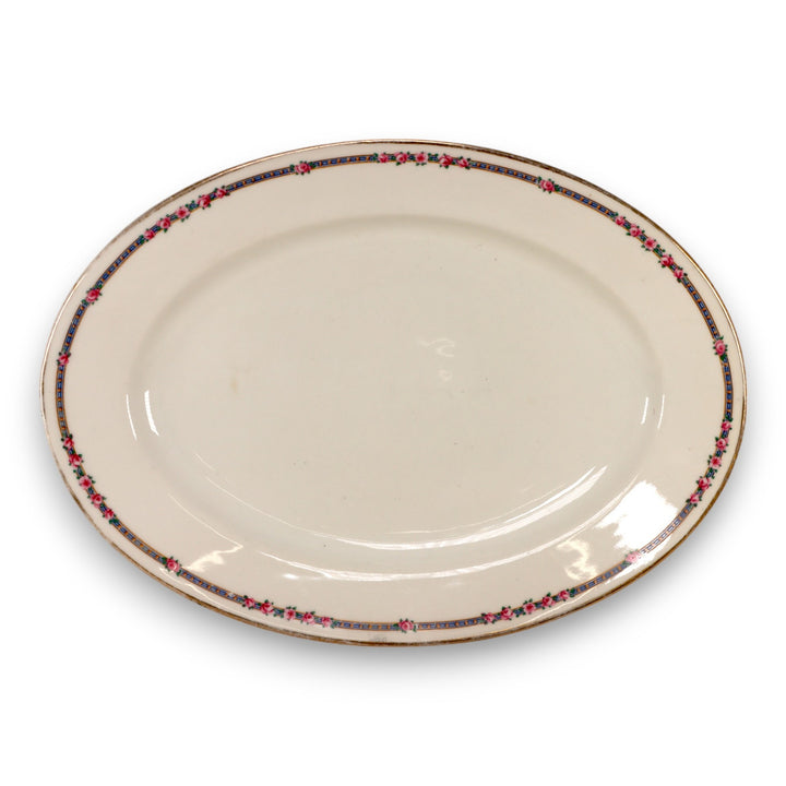 G Ahrenfeldt Limoges 14" Oval Serving Platter France AHR6 Rose Blue Circa 1900