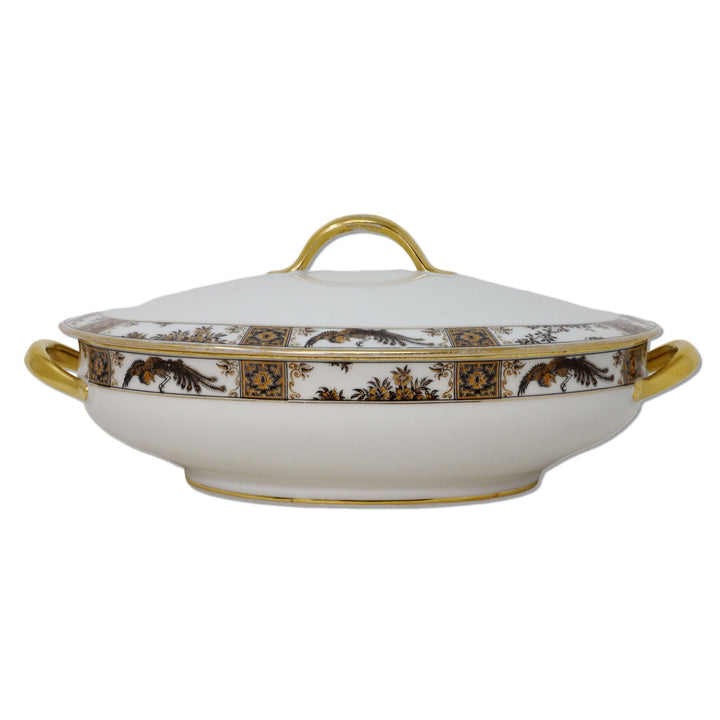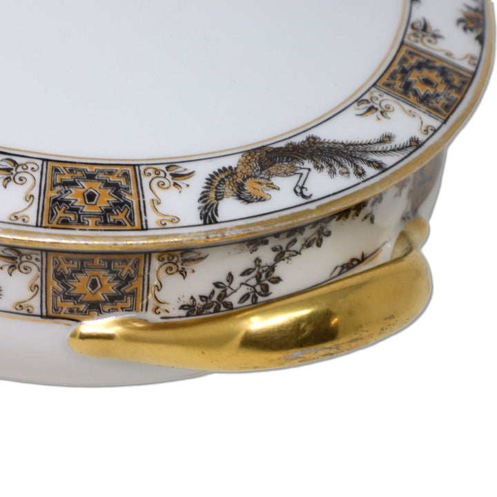 CH Field Haviland Covered Serving Dish GDA France Black Bird with Gold Accents