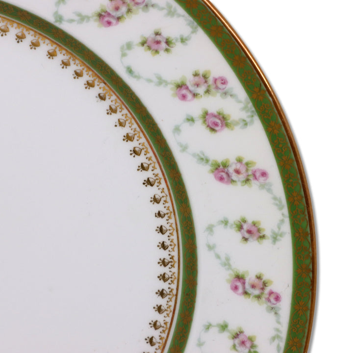 GDA Limoges Salad Dessert Plate 8.5" Rose Swag Green Band Gold Lace 1890's