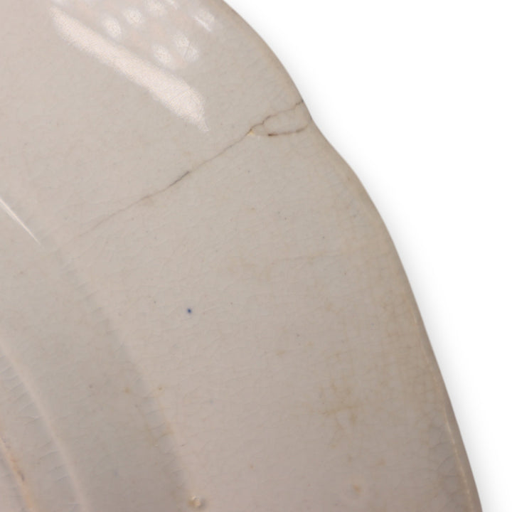 Fair condition. Discoloration, crazing, a rim chip and a crack on back.