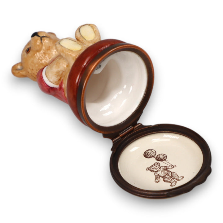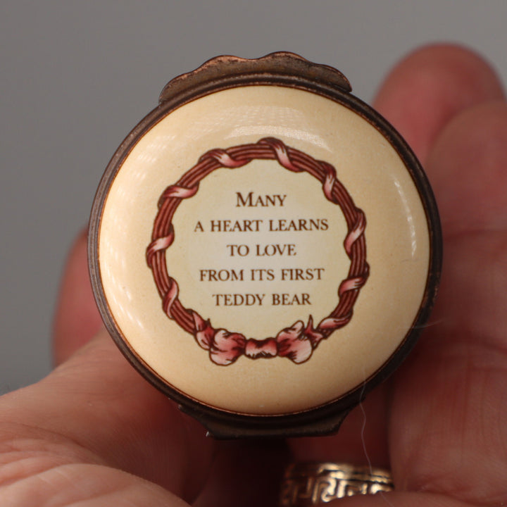 Halcyon Days Bonbonniere Enamel Teddy Bear Porcelain Trinket Box 2 1/2" England