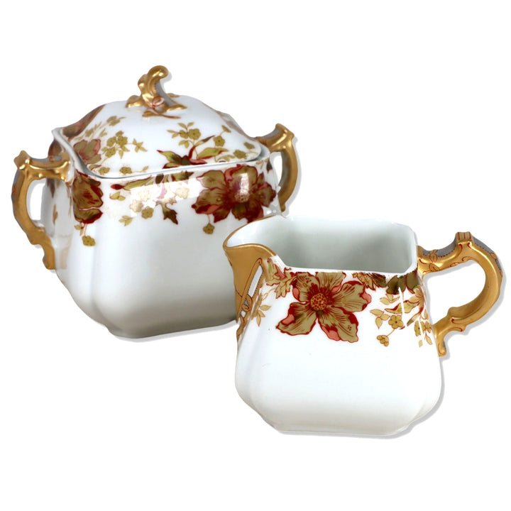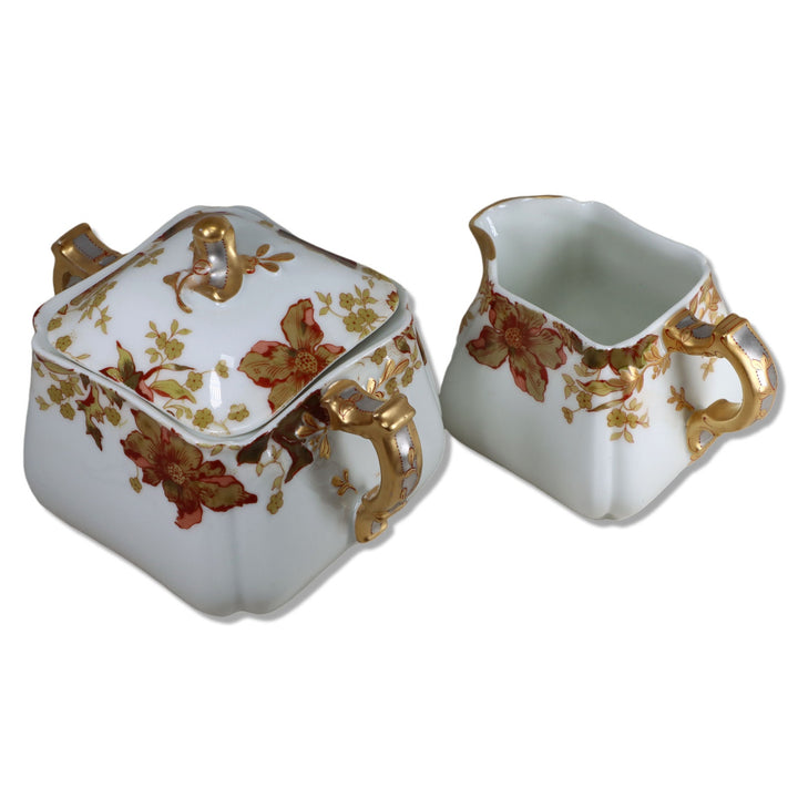 Haviland H & Co Limoges Lidded Sugar Bowl Creamer Set Antique 1880's