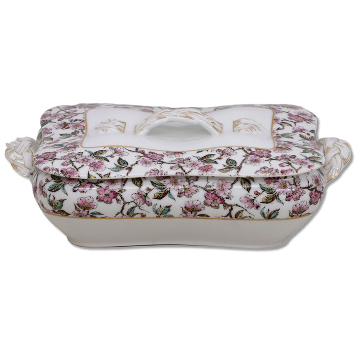 Haviland Limoges Schleiger 1187 Pink Lidded Casserole Dish 9” OD Antique 1880's