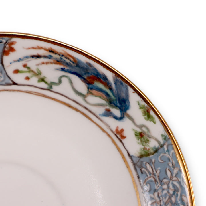 Haviland Rajah Floral Blue with Birds Gold Rim 5 1/2" Tea Cup Saucer France