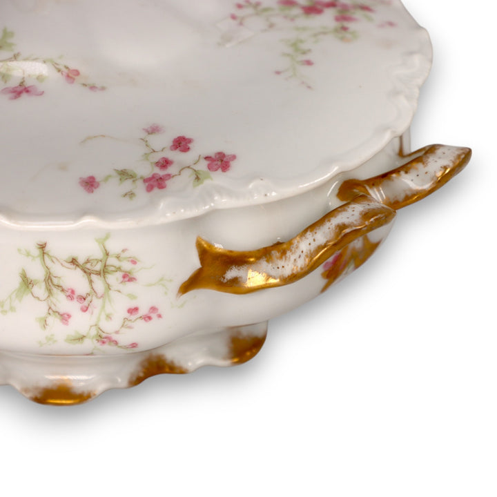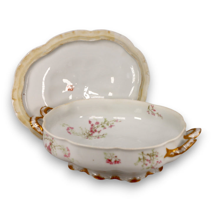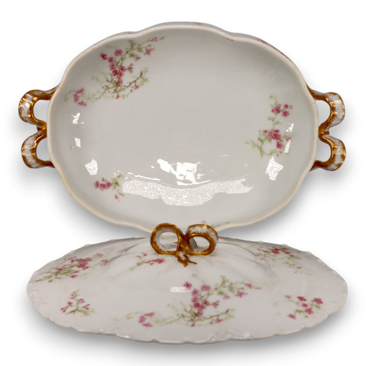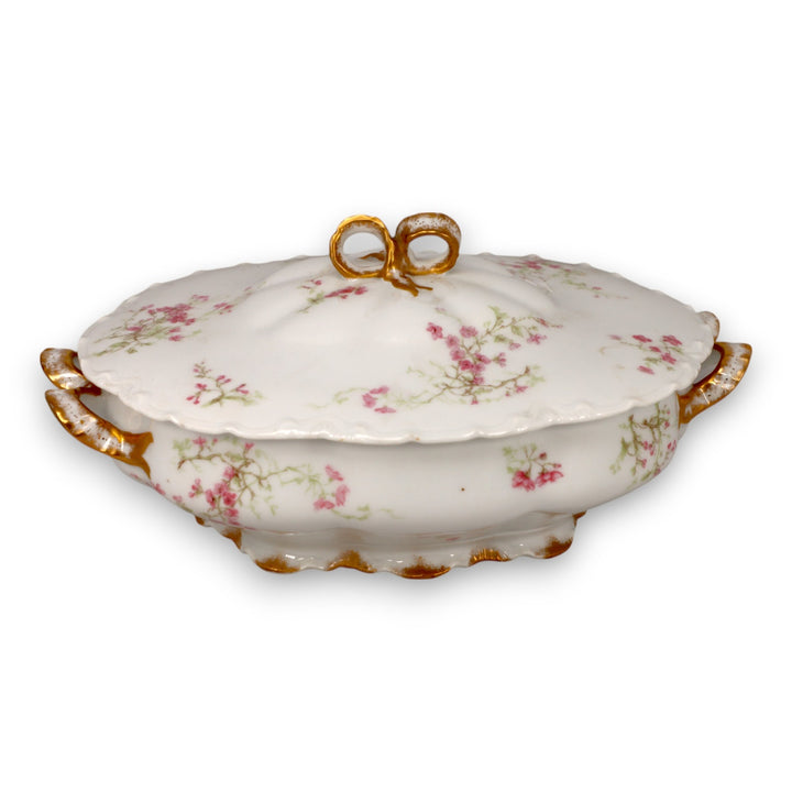 Haviland Schleiger 251-5 Pink Floral 11" Oval Covered Vegetable Bowl France