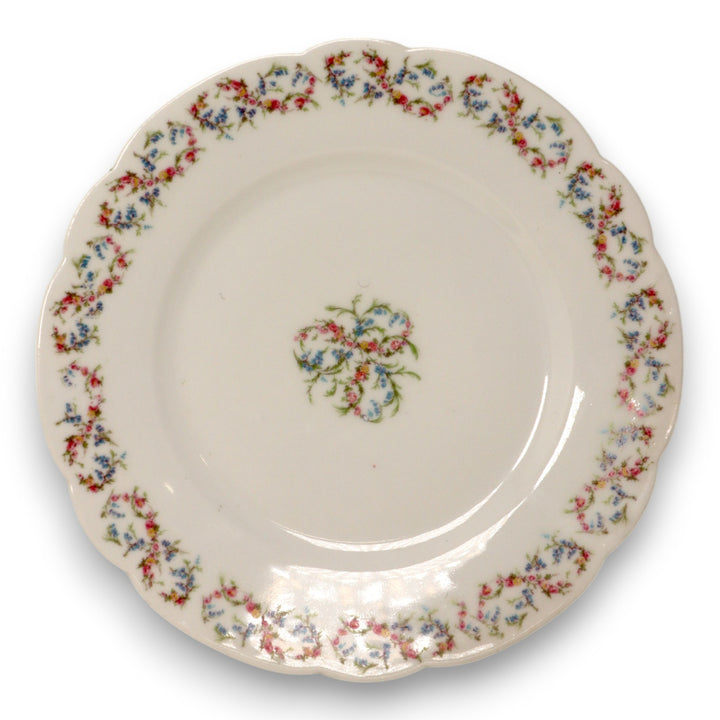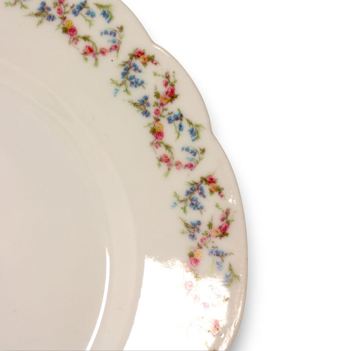 Beautiful pieces from 1880's with pink and blue floral covered rim and scalloped edge.