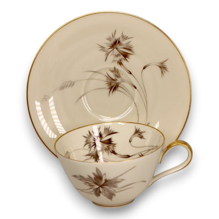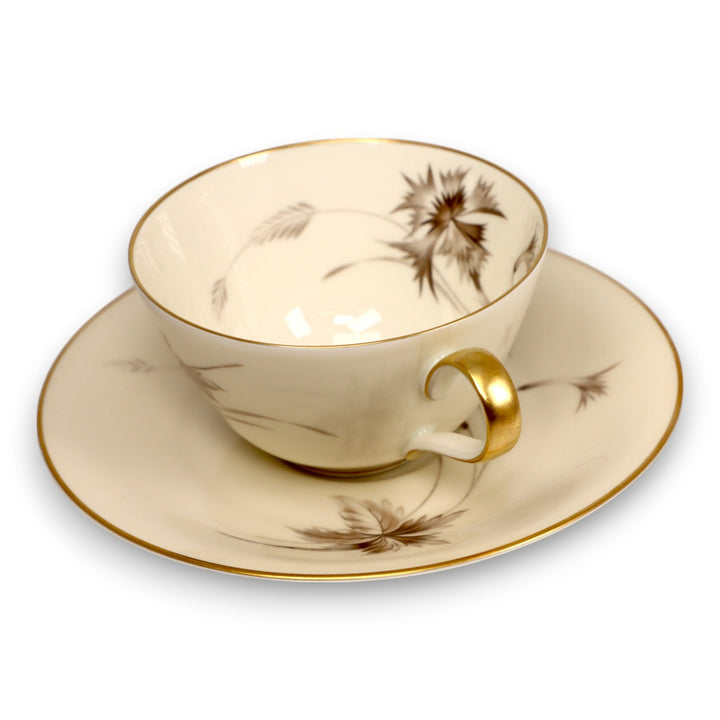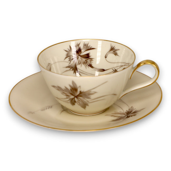 Heinrich - H&C Sepia Floral Ivory with Gold Trim Tea Cup and Saucer Set Germany