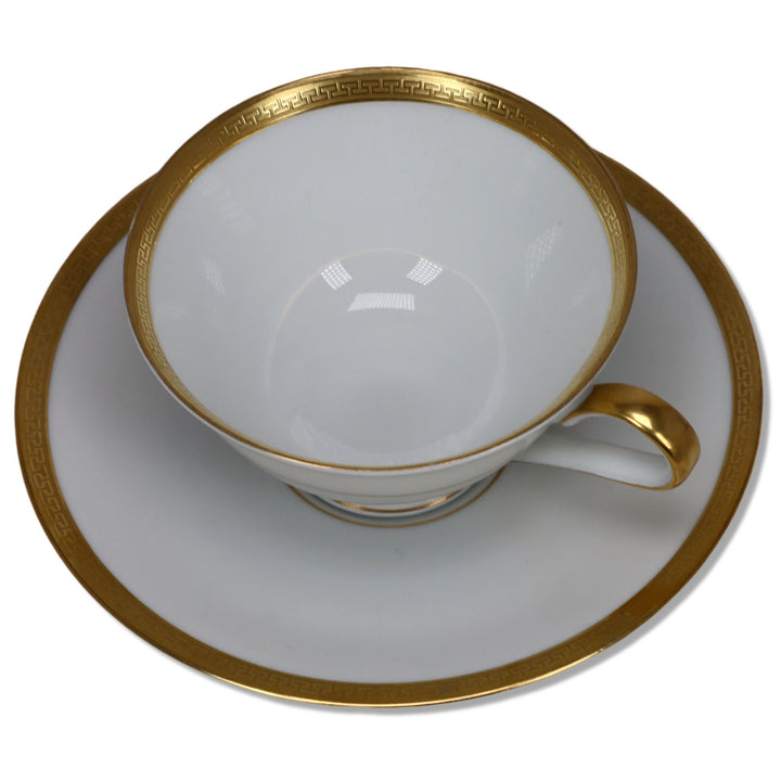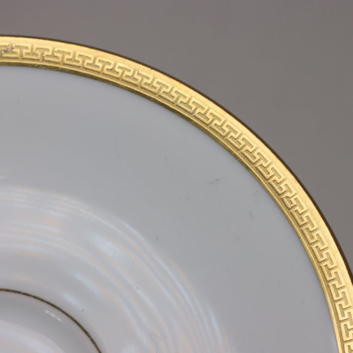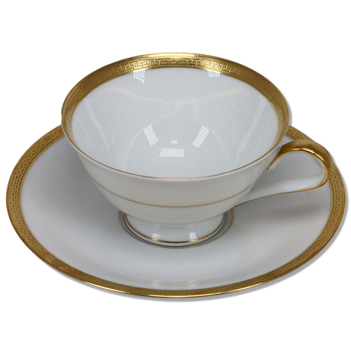 Heinrich H & Co Gold Greek Key Footed Tea Cup Saucer Encrusted Band 1930's