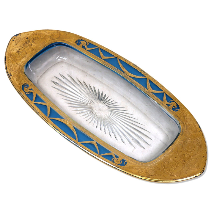 Heisey Glass 1184 Yeoman Art Deco Gold Hors D'oeuvres Celery Dish 1913 -1957