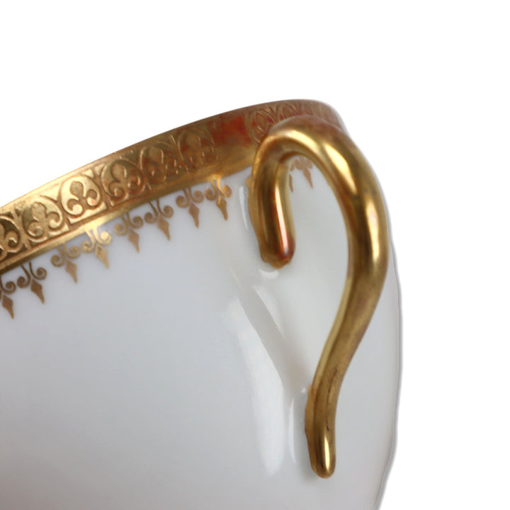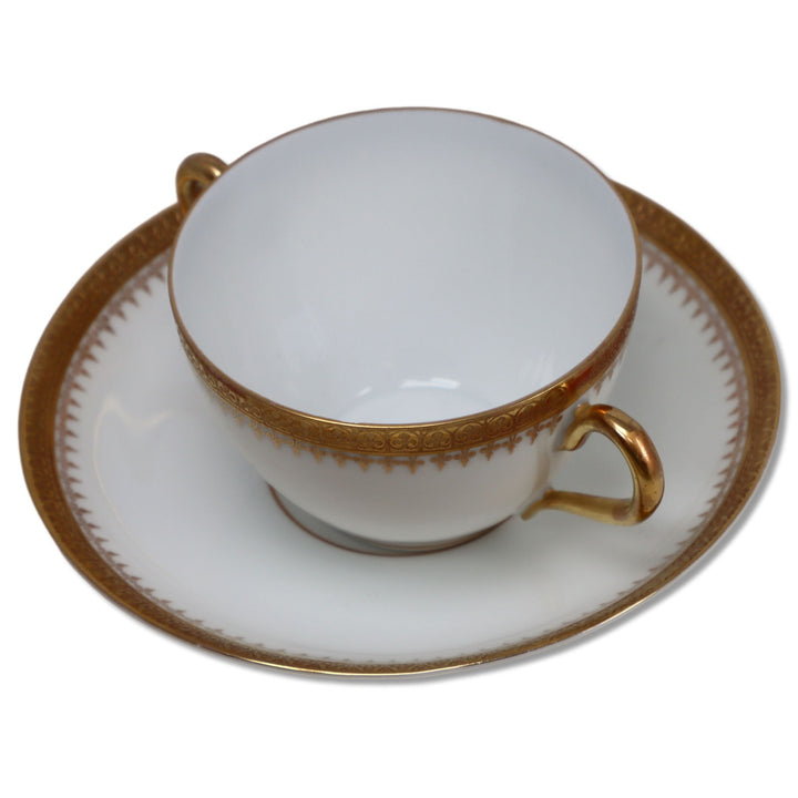 Hermann Ohme Gold Encrusted Bullion Bowl Saucer Set Silesia Germany 1900's