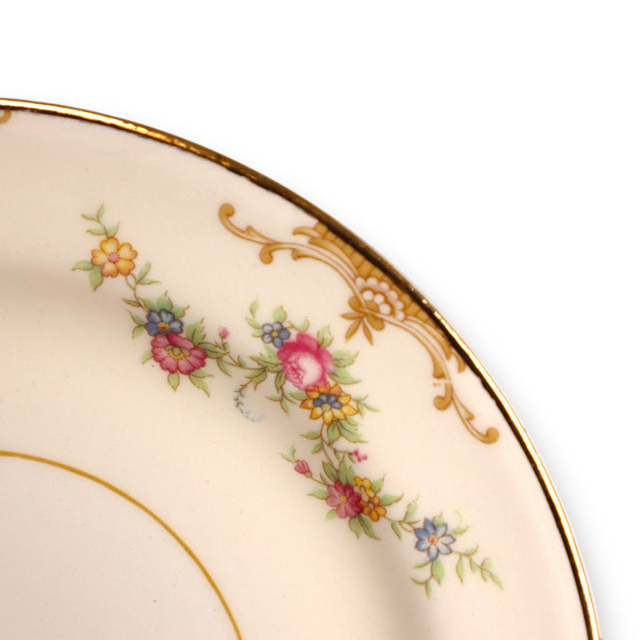 Eggshell Nautilus shape, Tan Border, Floral, Gold Trim