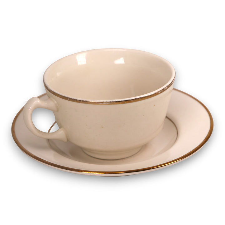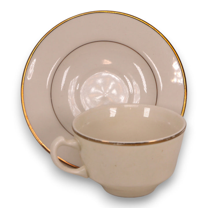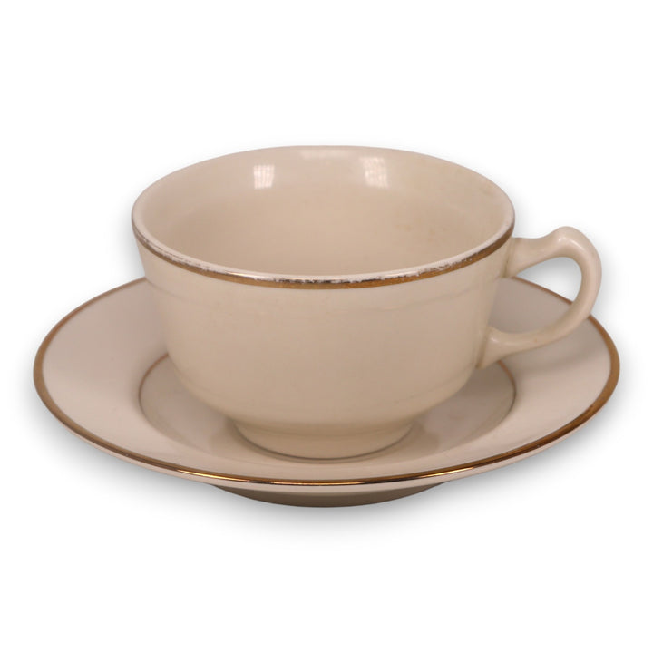 Homer Laughlin Diplomat Tea Cup Saucer Set Gold on Cream USA Vintage 1990's