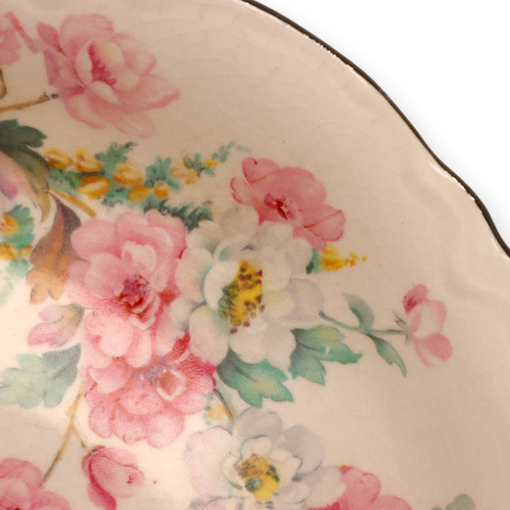 Homer Laughlin R3543 Coupe Soup Bowl 8" Roses Platinum Trim USA Vintage 1930's