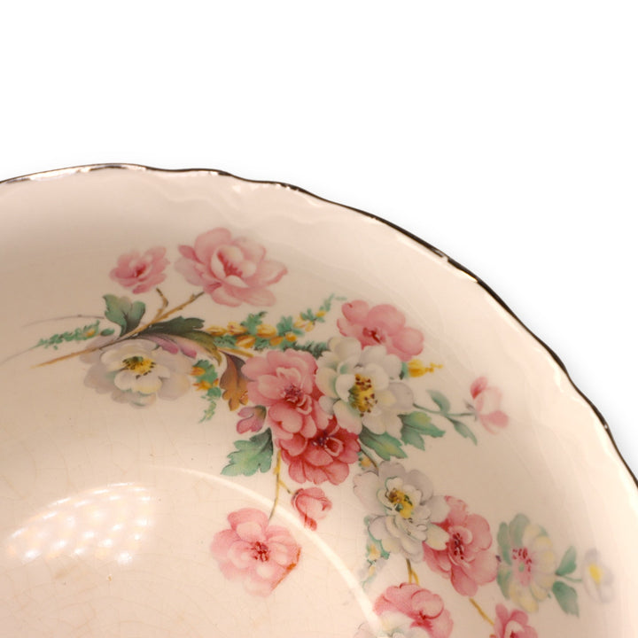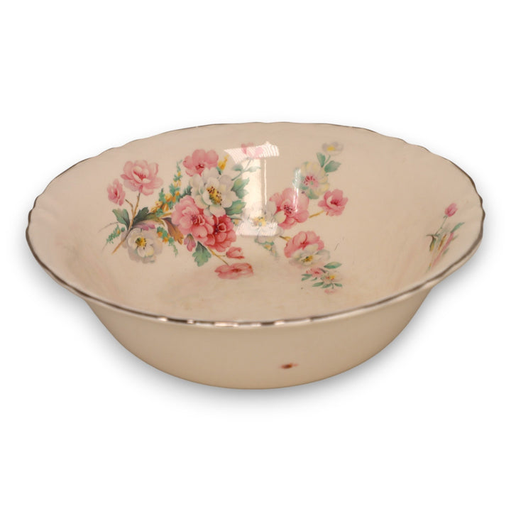 Homer Laughlin R3543 Vegetable Bowl Dish 8" Roses Platinum Trim USA Vintage 1930's