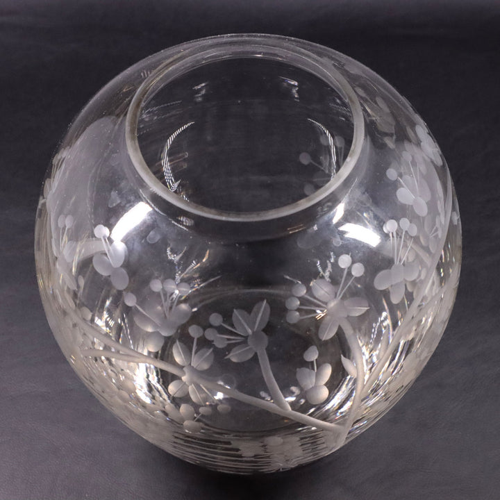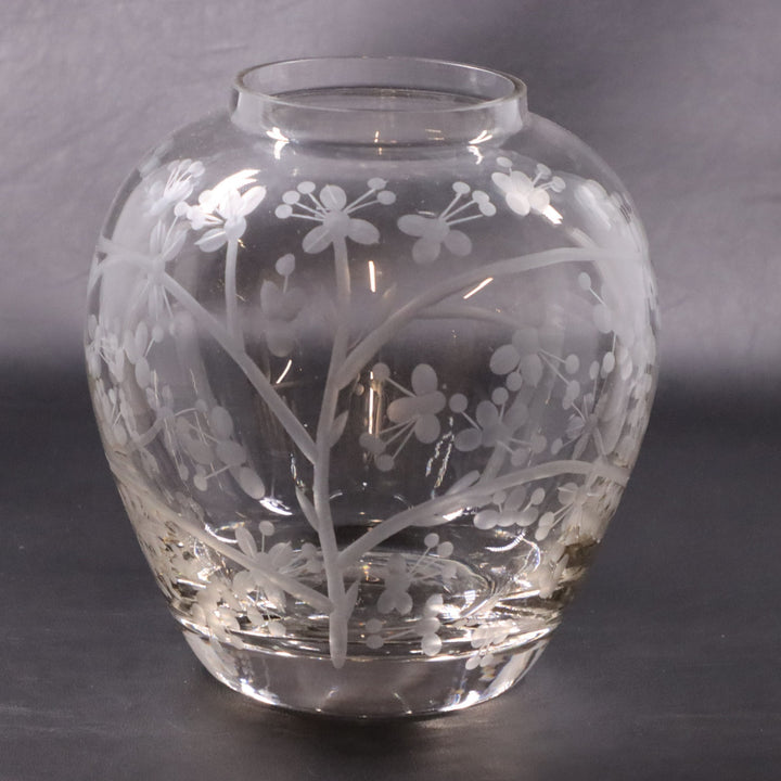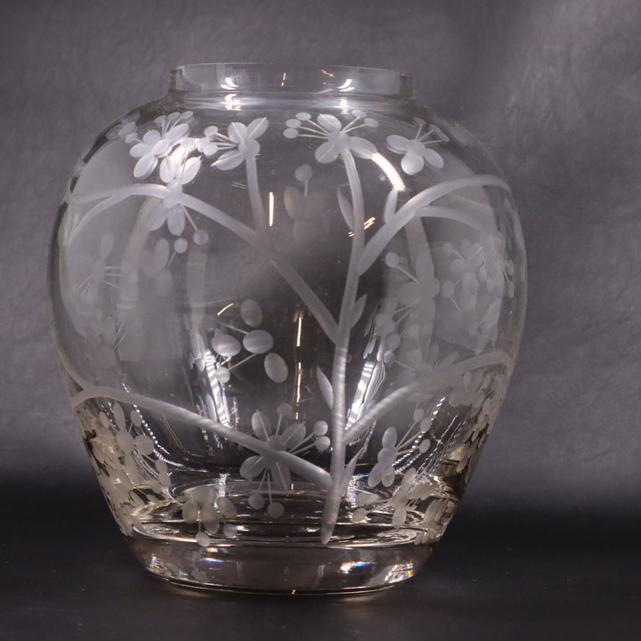 Honeysuckle Etched Hand Blown Crystal Glass Vase Heavy Base Lg Jar Shape 7" H