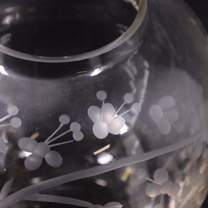 Honeysuckle Etched Hand Blown Crystal Glass Vase Heavy Base 7" H