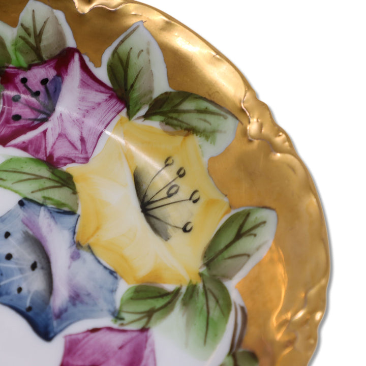 Scalloped heavily gilded rim band with actual hand painted floral design.