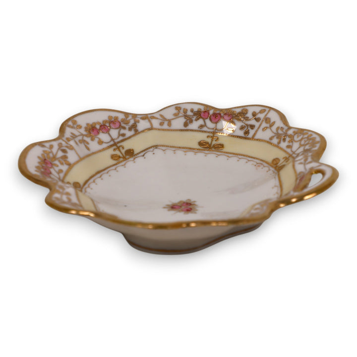 I & EC Company Gold Moraige Bon Bon Dish 8" Hand Painted Japan Antique