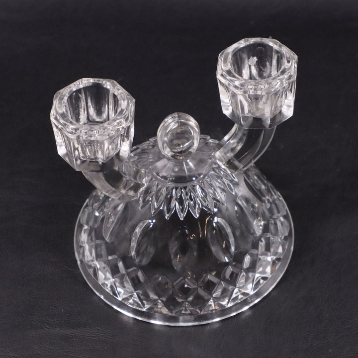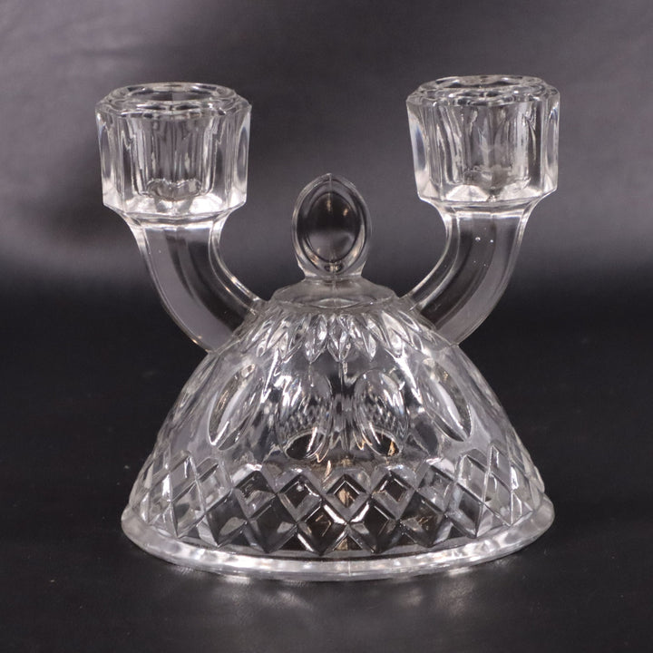 Pair Of Imperial Glass Tradition Clear Double Candle Stick Holders