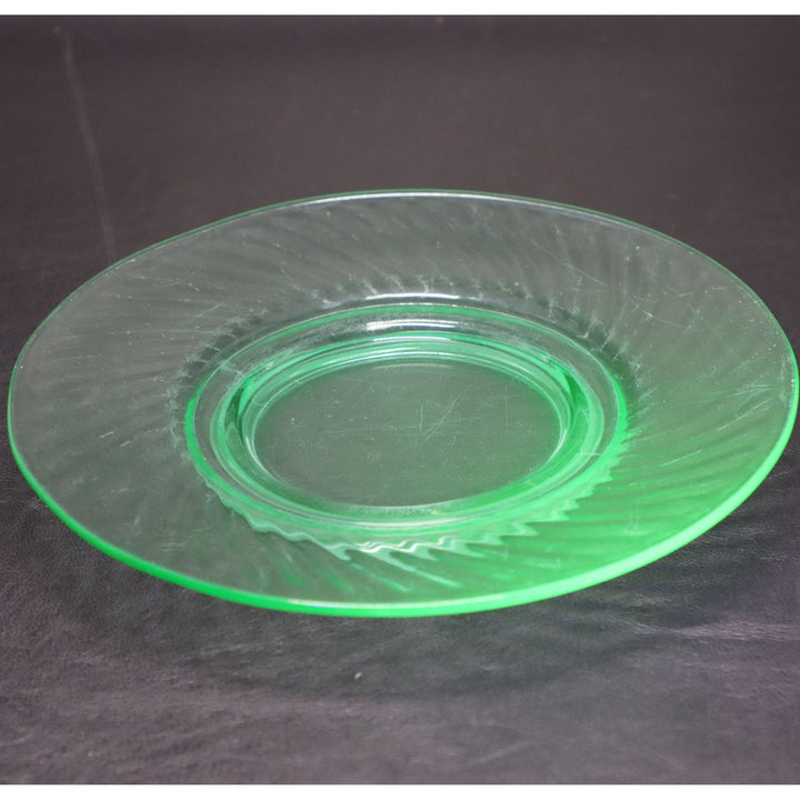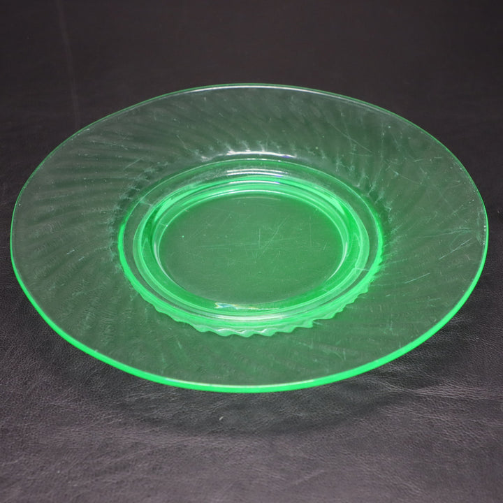 Imperial Glass Uranium Swirl Optic Green 8" Salad Plate Antique 1920's