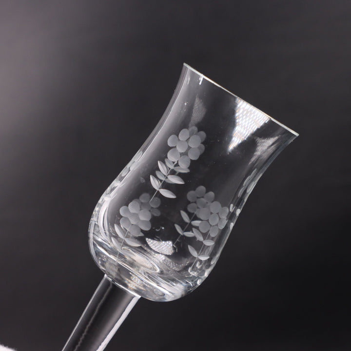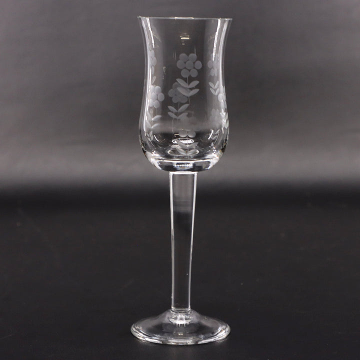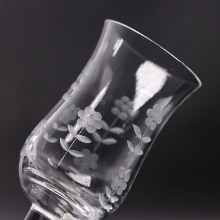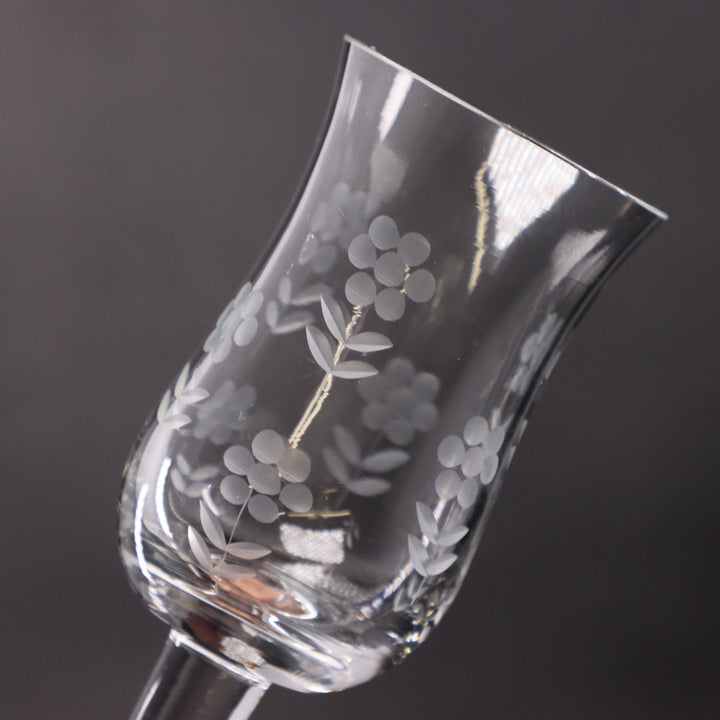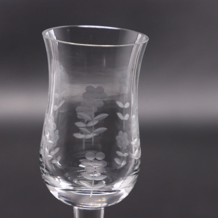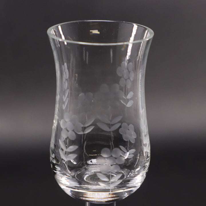 Import Associates Romanian Floral Etched Tulip Crystal Sherry Glass 6" Vintage