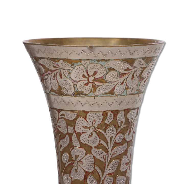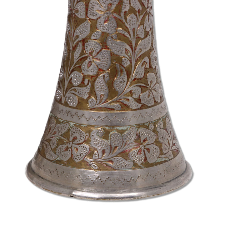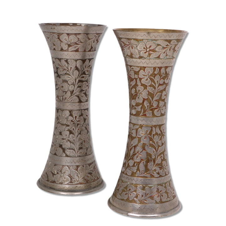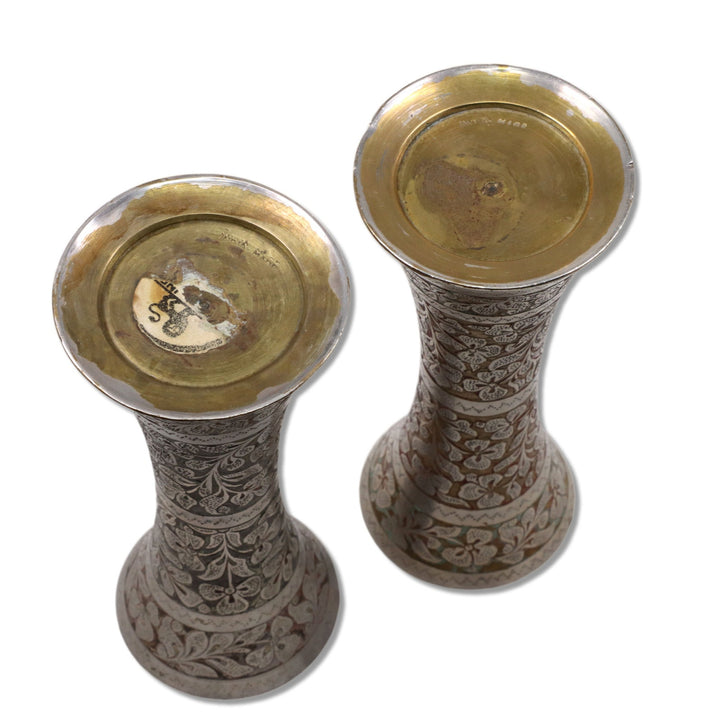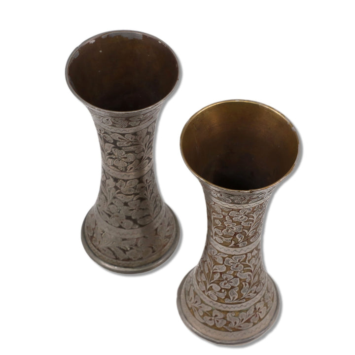 Indian Brass Bud Vases 5.75" Clover Floral Overlay Vintage 1960's 1 Pair