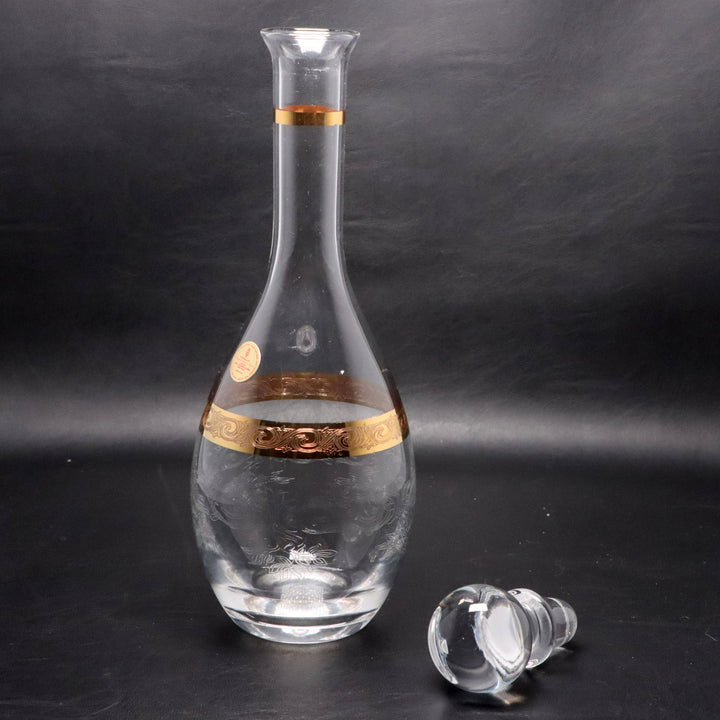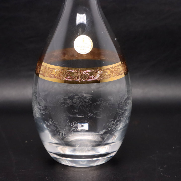 Interglass Crystal Decanter 13 1/2" Gold Foil Florence Italian Glass Vintage 1980's